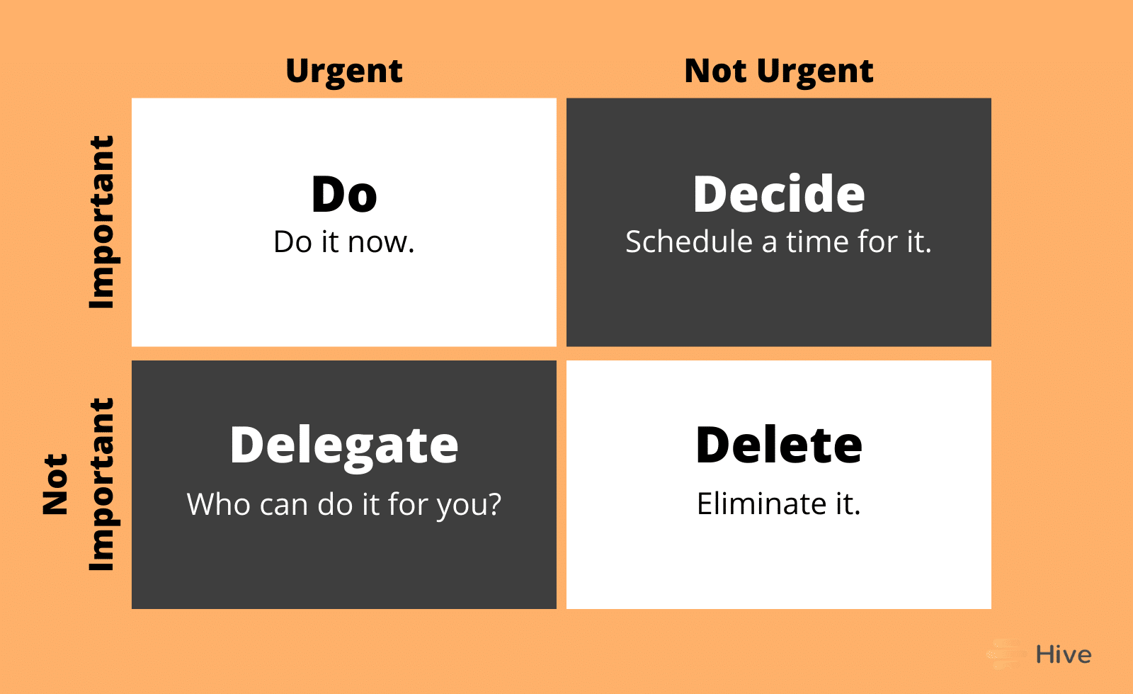 I began with the simple list but it quickly became obsolete and as soon as I began managing a team I moved over to the Eisenhower matrix. Developed by our beloved 34th president, the Eisenhower matrix’s goal is to avoid the “everything is urgent” fallacy of work and to truly have the doer focus on what is both important and urgent.